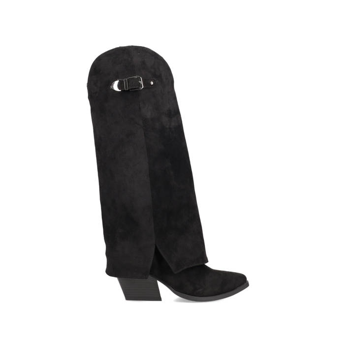 Taupe μπότα με γκέτα μέχρι το γόνατο. Διαθέτει σουέντ υφή και μεσαίο χοντρό τακούνι. Κλείνει με φερμουάρ.