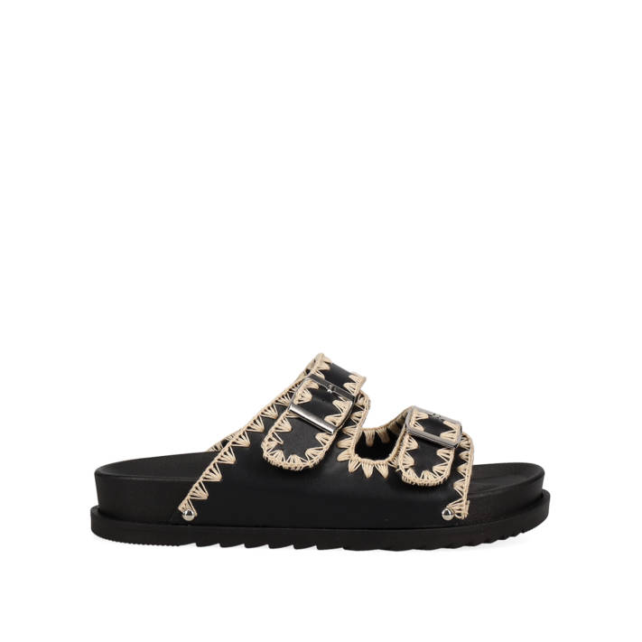 Εκρού footbed σανδάλι με κεντημένη μπορντούρα. Διαθέτει ρυθμιζόμενα λουράκια.
