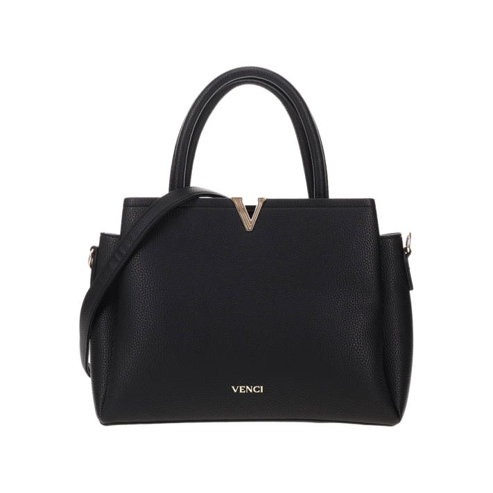 Grey handbag by brand VENCI. Features top handle and a removable crossbody strap. Fastens with zipper.