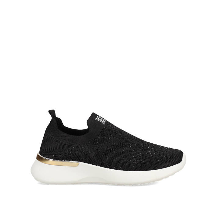 Brown slip-on elastic sports shoe by italian brand LAURA BIAGIOTTI. Embellished with rhinestones it features a white sole. Ties with laces.